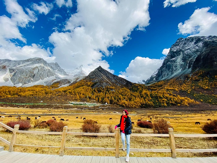Khu vực này cũng là địa điểm thuận lợi để quan sát 3 đỉnh núi phủ tuyết trắng vĩnh cửu nổi tiếng: Tiên Nãi Nhật, Hà Nặc Đa Cát và Ương Mại Dũng.
