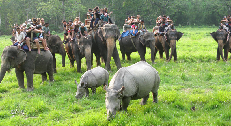 + Ghé thăm vườn quốc gia Hoàng gia Chitwan, được thành lập vào năm 1973 và là một di sản thế giới của UNESCO. Du khách sẽ được chiêm ngưỡng vẻ đẹp của khu rừng tận mắt quan sát một số loài động vật hoang dã, loài chim quý hiếm tại khu vườn.